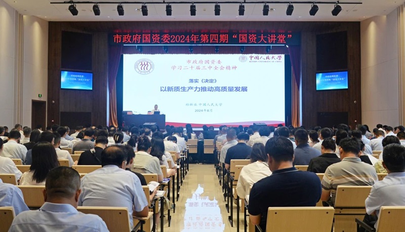 黨的二十屆三中全會擘畫了進一步全面深化改革、推進中國式現(xiàn)代化建設(shè)的新藍圖,黨中央、省委、市委要求切實抓好黨的二十屆三中全會精神的學習宣傳和貫徹落實。8月13日上午,市政府國資委在鄭州水務集團有限公司智慧水務中心舉辦2024年第四期“國資大講堂”,邀請中國人民大學黨委常委、副校長鄭新業(yè)教授圍繞《學習黨的二十屆三中全會精神 以新質(zhì)生產(chǎn)力推動高質(zhì)量發(fā)展》作專題輔導。