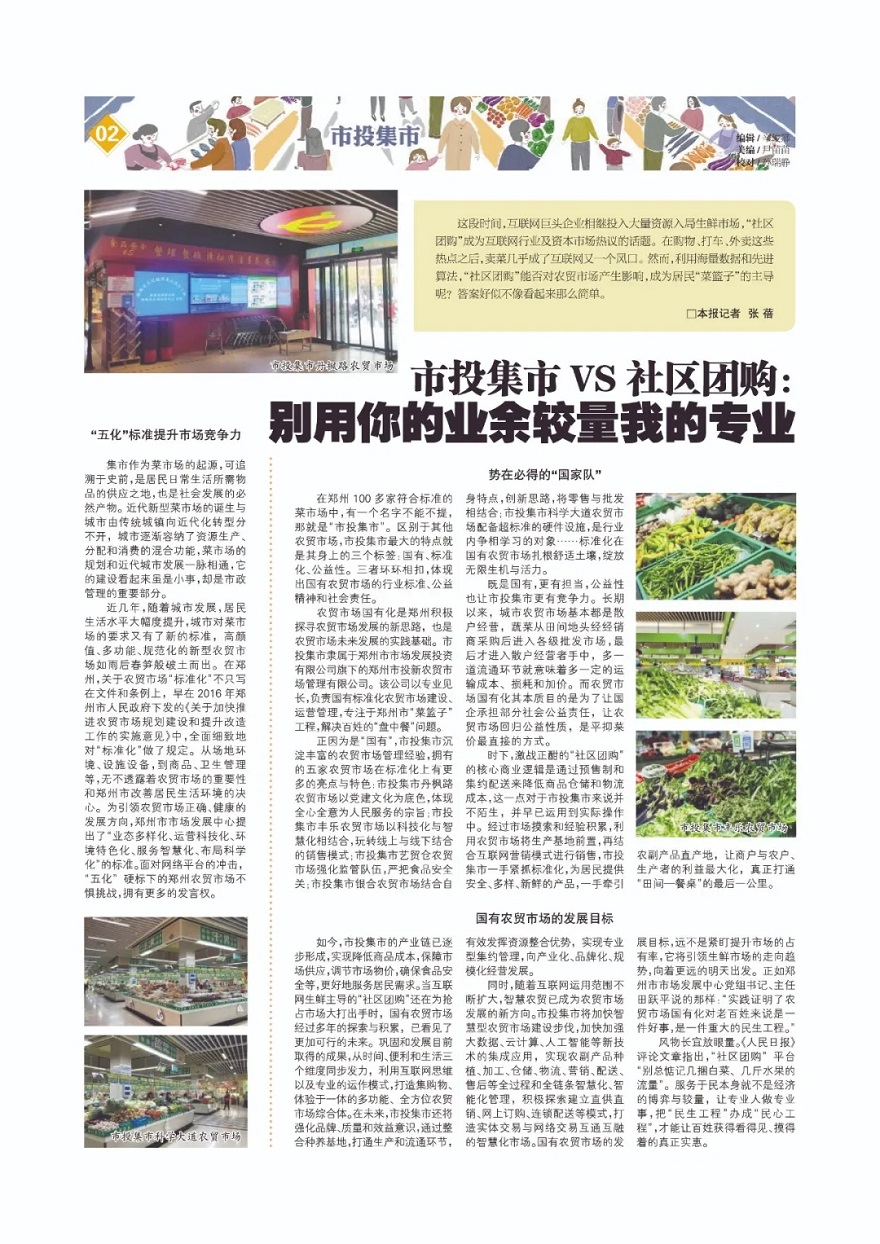 在2020年第48期專題中,我們通過(guò)鄭州市市場(chǎng)發(fā)展中心的推薦,采訪了鄭州農(nóng)貿(mào)市場(chǎng)里的標(biāo)桿企業(yè),很多讀者對(duì)市投集市產(chǎn)生了濃厚的興趣,什么是國(guó)有農(nóng)貿(mào)市場(chǎng)?菜市場(chǎng)的公益性指的是啥?市投集市踐行標(biāo)準(zhǔn)化有什么突出特點(diǎn)?