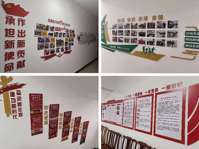 文化墻內(nèi)容包括黨的一大到二十大黨史、四個意識、四個自信、兩個維護(hù)、黨員干部職工風(fēng)采、黨建品牌、黨務(wù)公開、黨員示范崗等內(nèi)容,陣地建設(shè)的打造,不僅宣傳了黨建知識、展現(xiàn)了黨員形象,還涵蓋了當(dāng)前黨建工作的重點(diǎn)內(nèi)容,將黨建品牌上墻,可以很直觀的看到黨建深度融入生產(chǎn)經(jīng)營工作取得的實(shí)效性做法,可以讓職工群眾更深刻直觀的了解黨員先進(jìn)形象,同時不斷激勵黨員創(chuàng)先爭優(yōu)、爭做模范,進(jìn)一步提升了黨建的文化內(nèi)涵,使廣大黨員群眾在潛移默化中了解、支持、深化黨建工作,不斷提升黨建活力,發(fā)揮黨建引領(lǐng)作用。